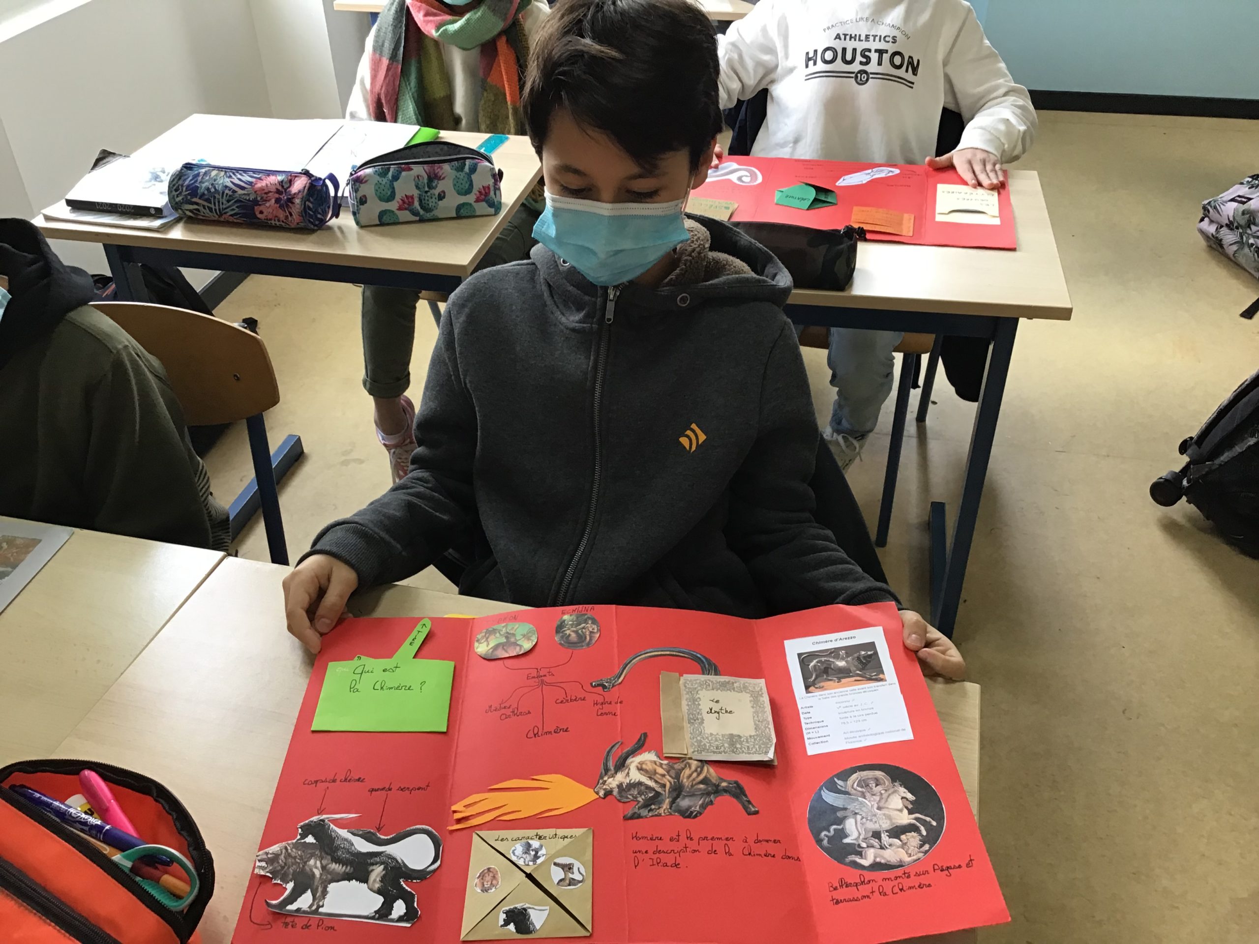 Dans le cadre de la séquence en français sur les monstres avec M. Etchechoury, professeur de lettres modernes, les élèves ont réalisé des lapbooks monstrueux sur des figures Mythologiques. Ils ont ainsi pu décrire la personnalité et les attributs de ces créatures fantastiques. À l’image des grands poètes de l’Antiquité, chacun a raconté son mythe à la classe. Leurs nombreuses recherches en classe comme à la maison ainsi que leur créativité ont permis d’exposer un travail original et de qualité.