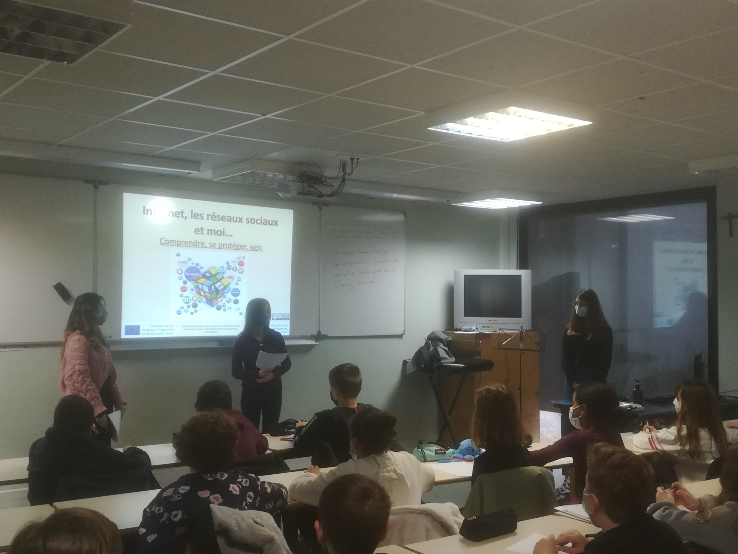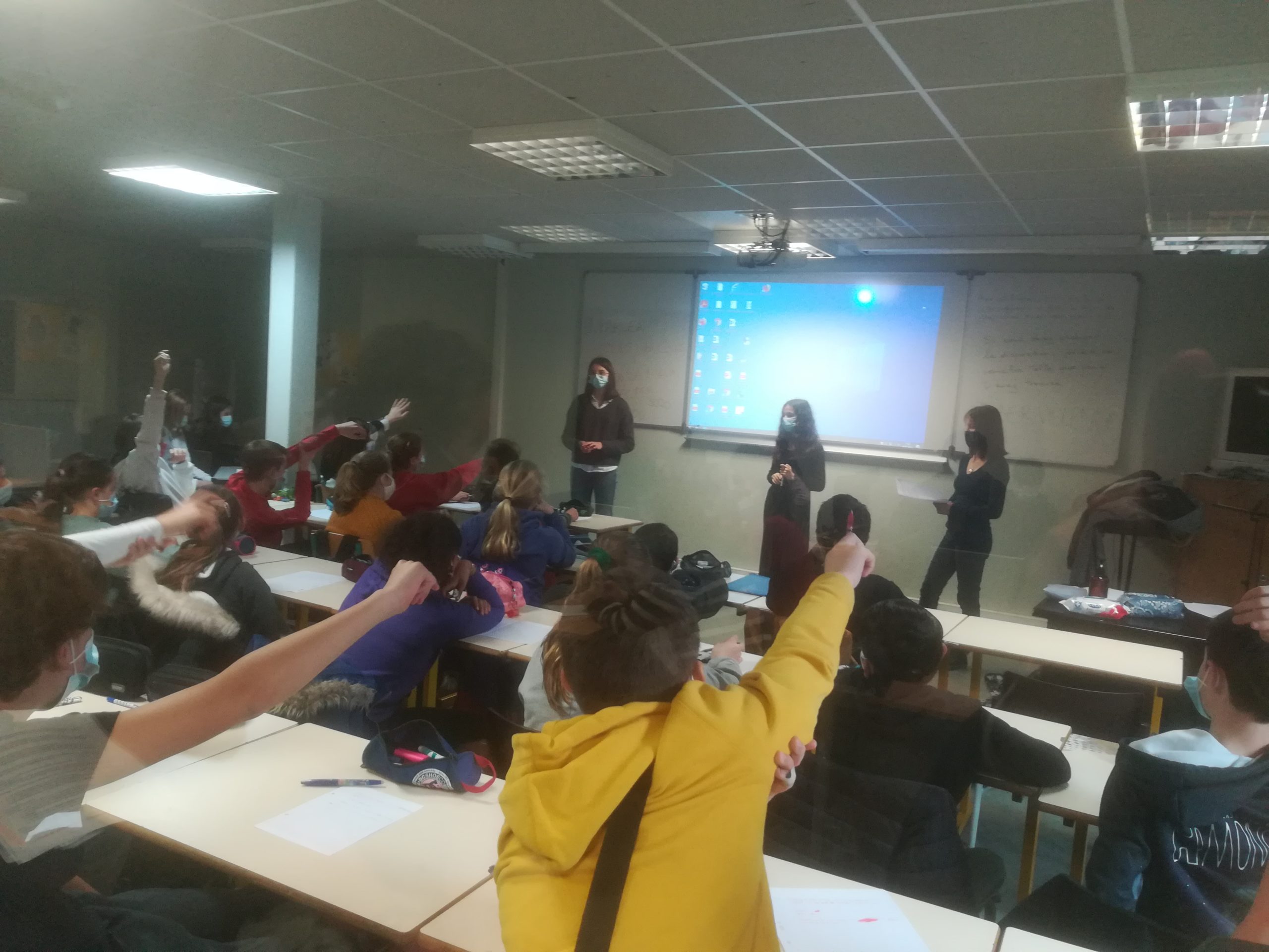 La présentation ainsi que l’échange ont montré qu’ils savaient capter l’attention de leurs jeunes camarades et les sensibiliser aux écueils d’internet. L’intervention leur a permis en même temps de s’exercer à la présentation d’un document, à prendre la parole et à l’organiser en autonomie tout en s’adaptant aux élèves de 6e. Une expérience réussie très enrichissante !