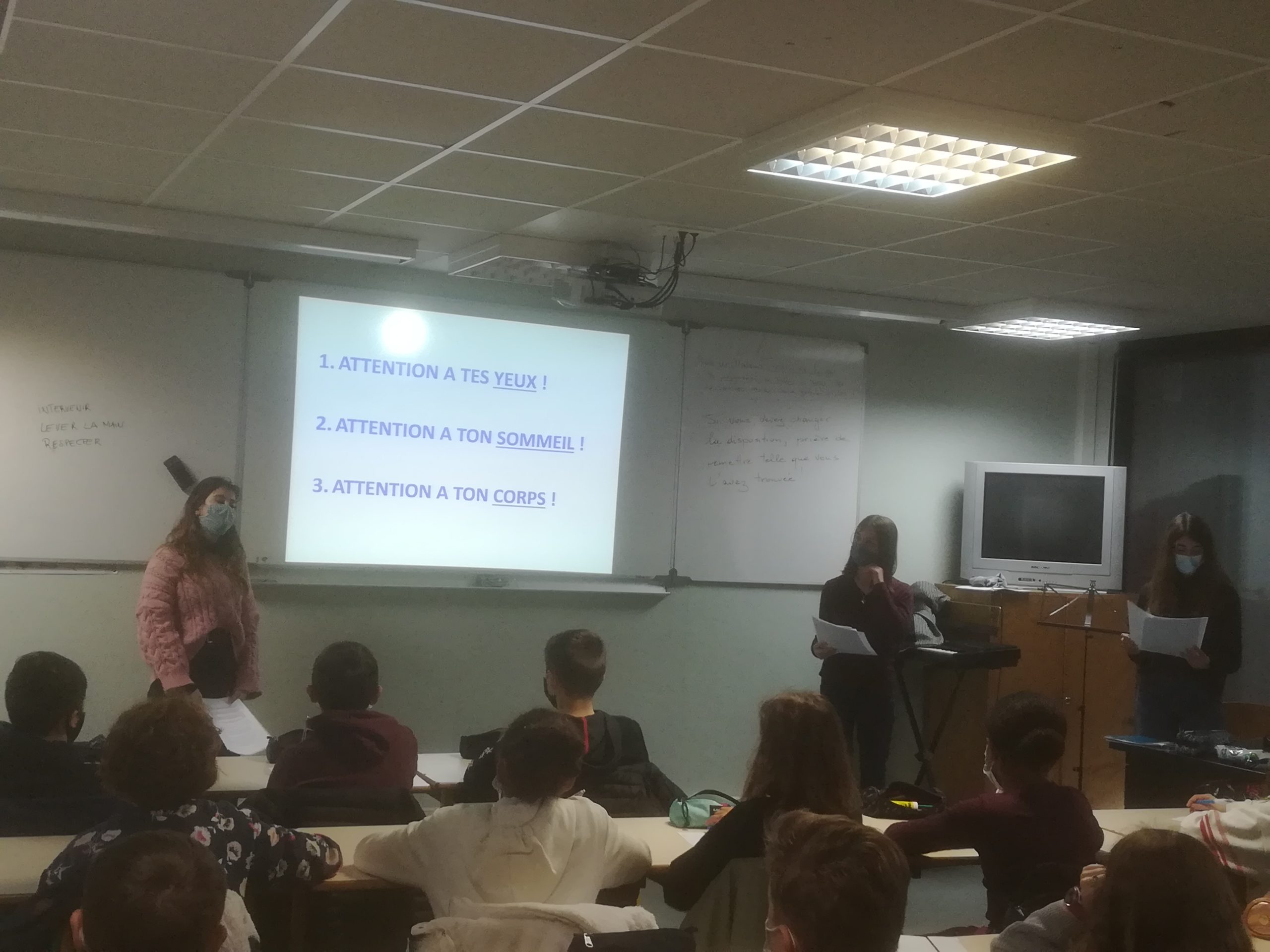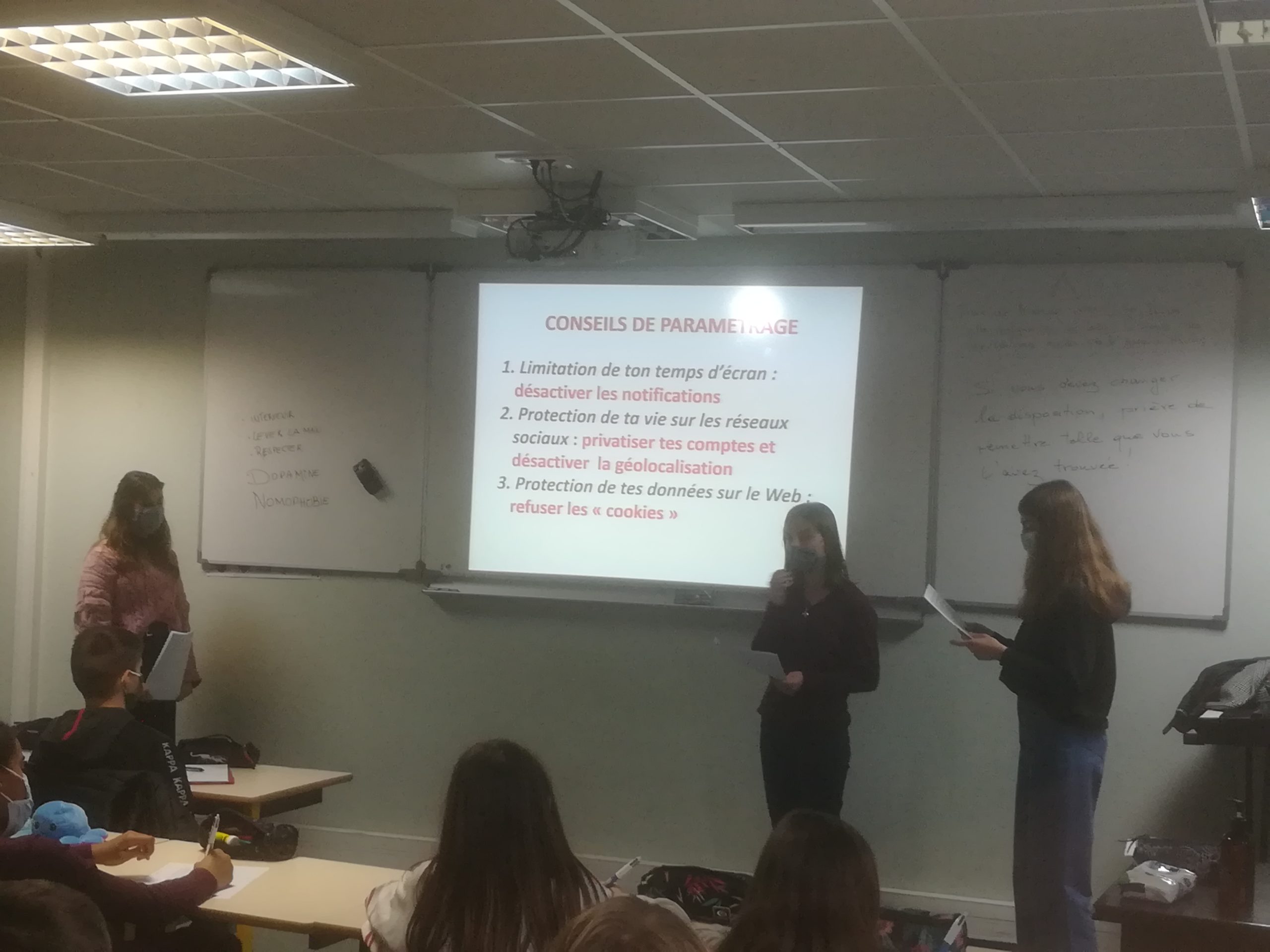 Après leur présentation avec PowerPoint, nos « media coaches » ont échangé avec les 6e autour des thèmes suivants : les temps d’écran – Internet et notre santé – Les cyber violences – Comment lutter ? – Comment se protéger ? .